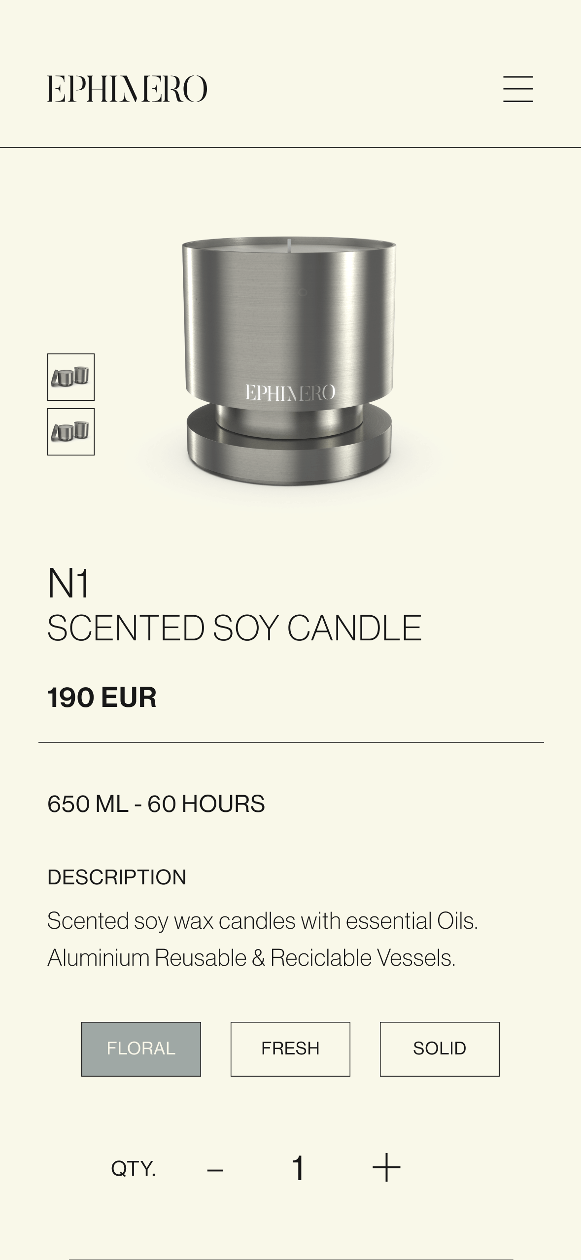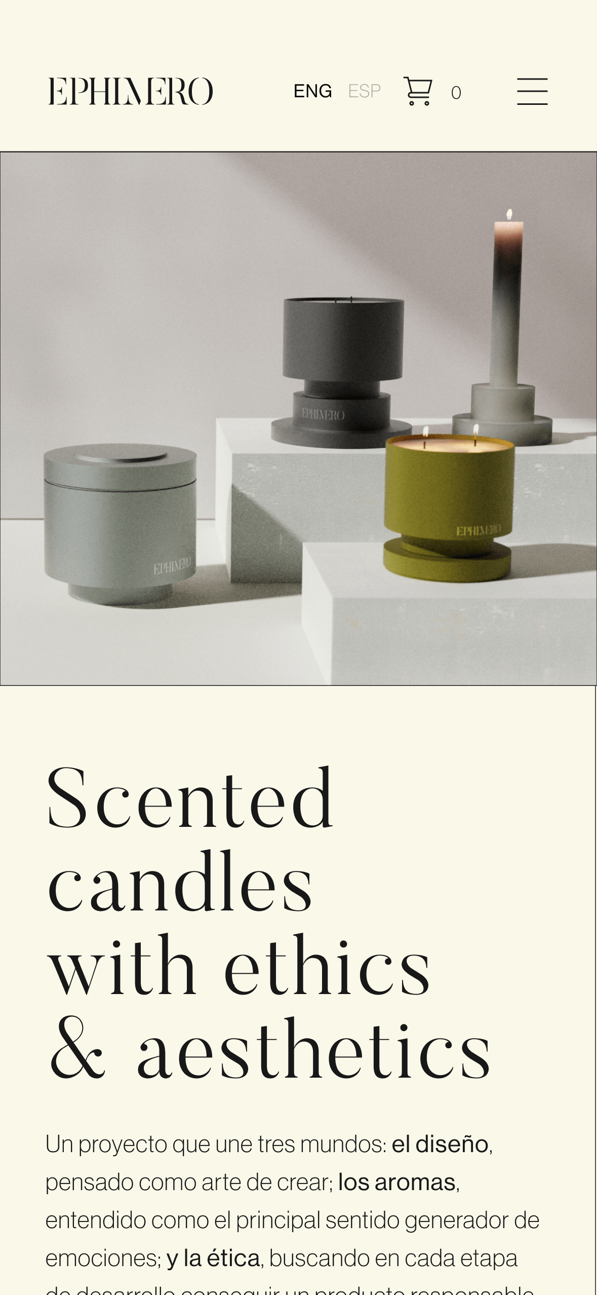 We focused on creating an elegant and minimalist design that emphasized the quality and aesthetic of Ephimero's candles. The website was built with a mobile-first approach, ensuring that customers could easily browse and purchase products on any device.